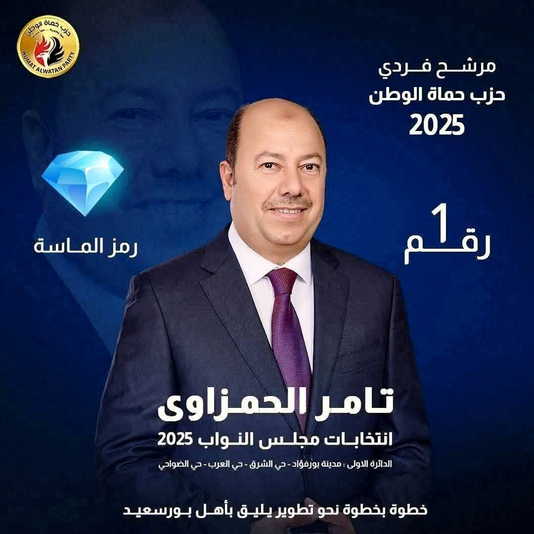 الحمزاوي: رسالتي لكل أبناء بورسعيد أن يختاروا من يعمل بضمير ويضع مصلحة الناس فوق أي اعتبار. صوتكم هو أمانة، وأنا أتعهد بأن أكون صوتكم تحت قبة البرلمان، مدافعًا عن حقوقكم وساعيًا إلى تحقيق التنمية الشاملة في مجالات العمل، والسياحة، والخدمات، وتمكين الشباب.