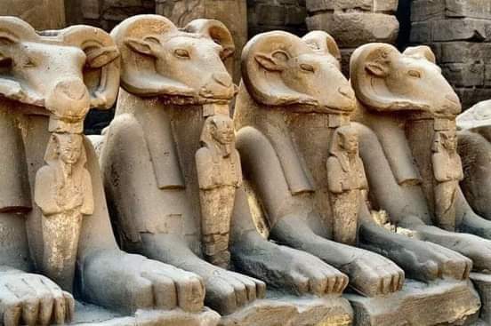 ? يرمز الكبش للإله آمون إله معبد الكرنك، أما التماثيل التي تتخذ شكل إنسان بجسم أسد فترمز للإله أبي الهول.