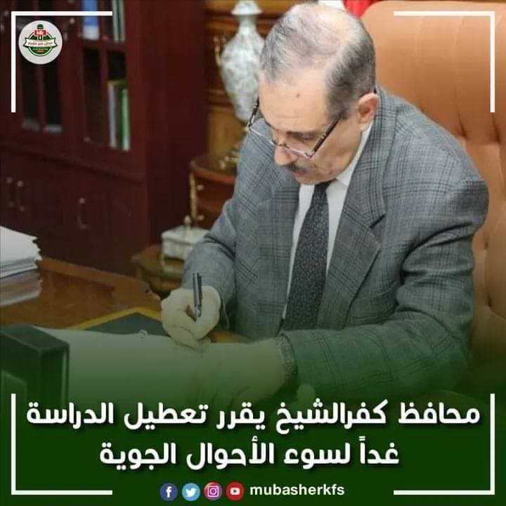 محافظ كفرالشيخ أصدر قرار بتعطيل المدارس لسوء الأحوال الجوية. اليوم الأربعاء الموافق 8ديسمبر